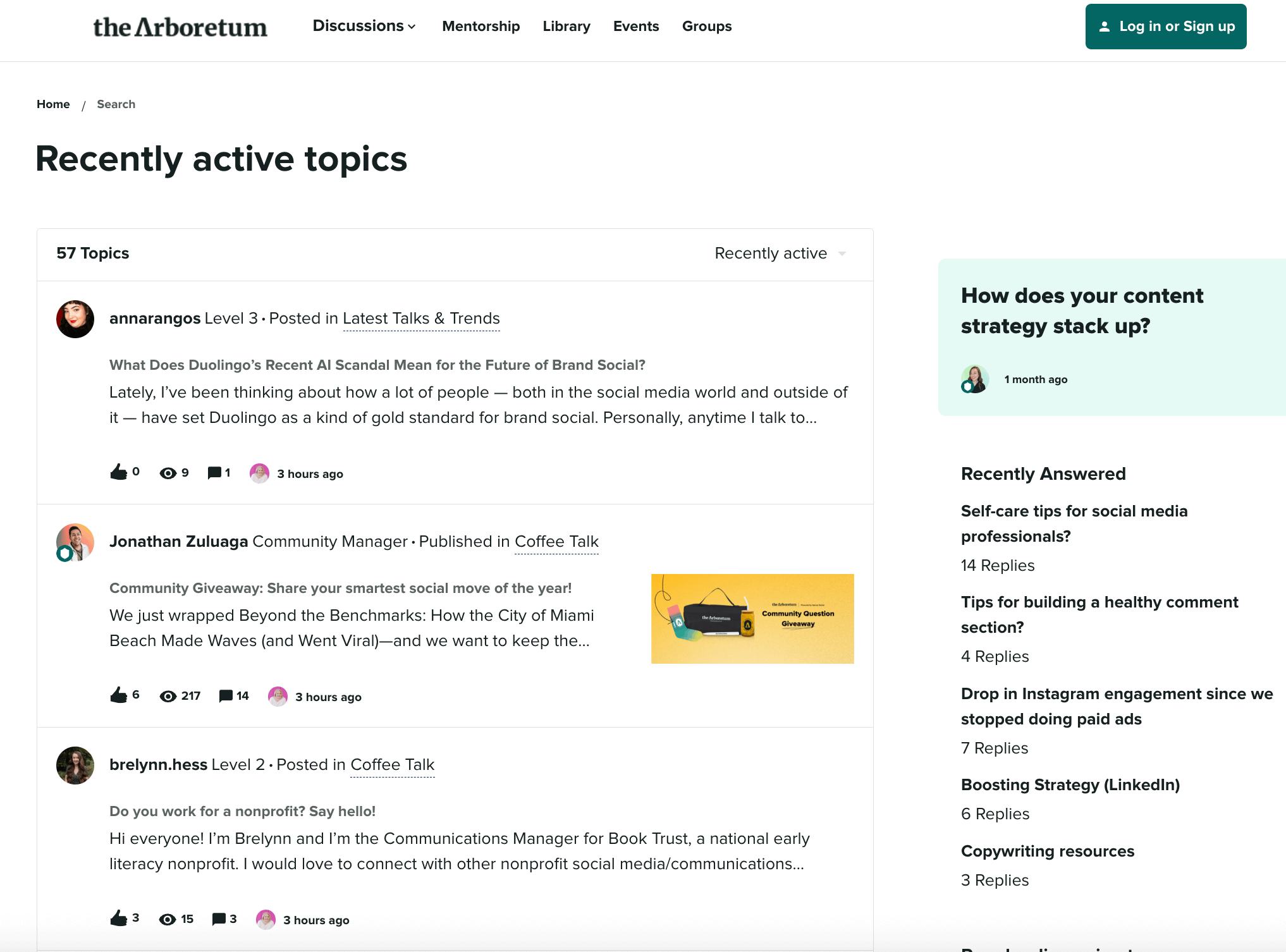 Sprout’s community, The Arboretum, is an example of a brand community where like-minded social professionals come together to share soundbites, ask questions and participate in contests and giveaways.
