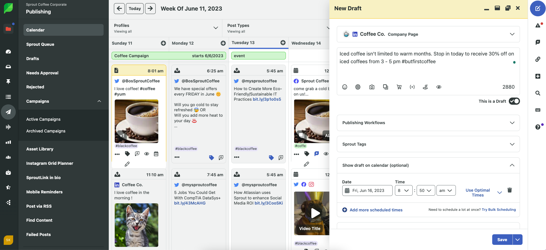 Use the approval workflow to collaborate on publishing strategy—great for agency collaboration or peer review.